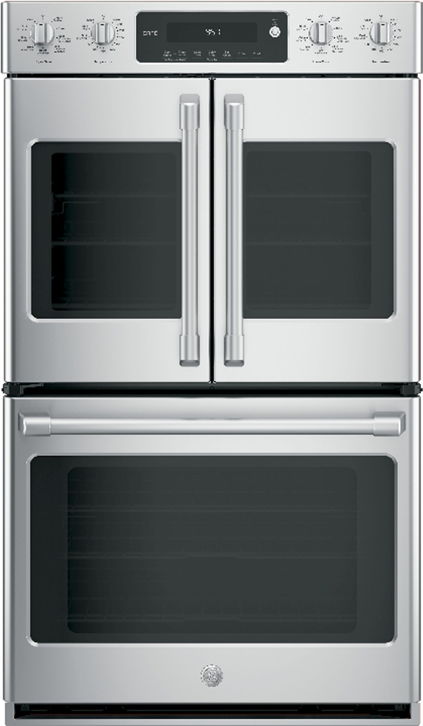 French door design inspired by commercial kitchen designs, precision engineering allows for one-handed opening of both oven doors at the same time. Electronic dial controls feature the glass touch display and ergonomic control knobs are easy to operate and clean.Read More