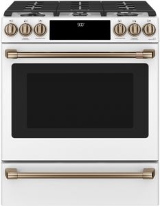 Explore your love of entertaining. This Dual Fuel slide-in range unites the power of a gas cooktop with the precision of an electric oven. The industry’s first edge-to-edge cooktop with six versatile burners also includes an integrated griddle to easily handle large meals and family favorites. And True European Convection creates even baking and roasting results every time.Read More