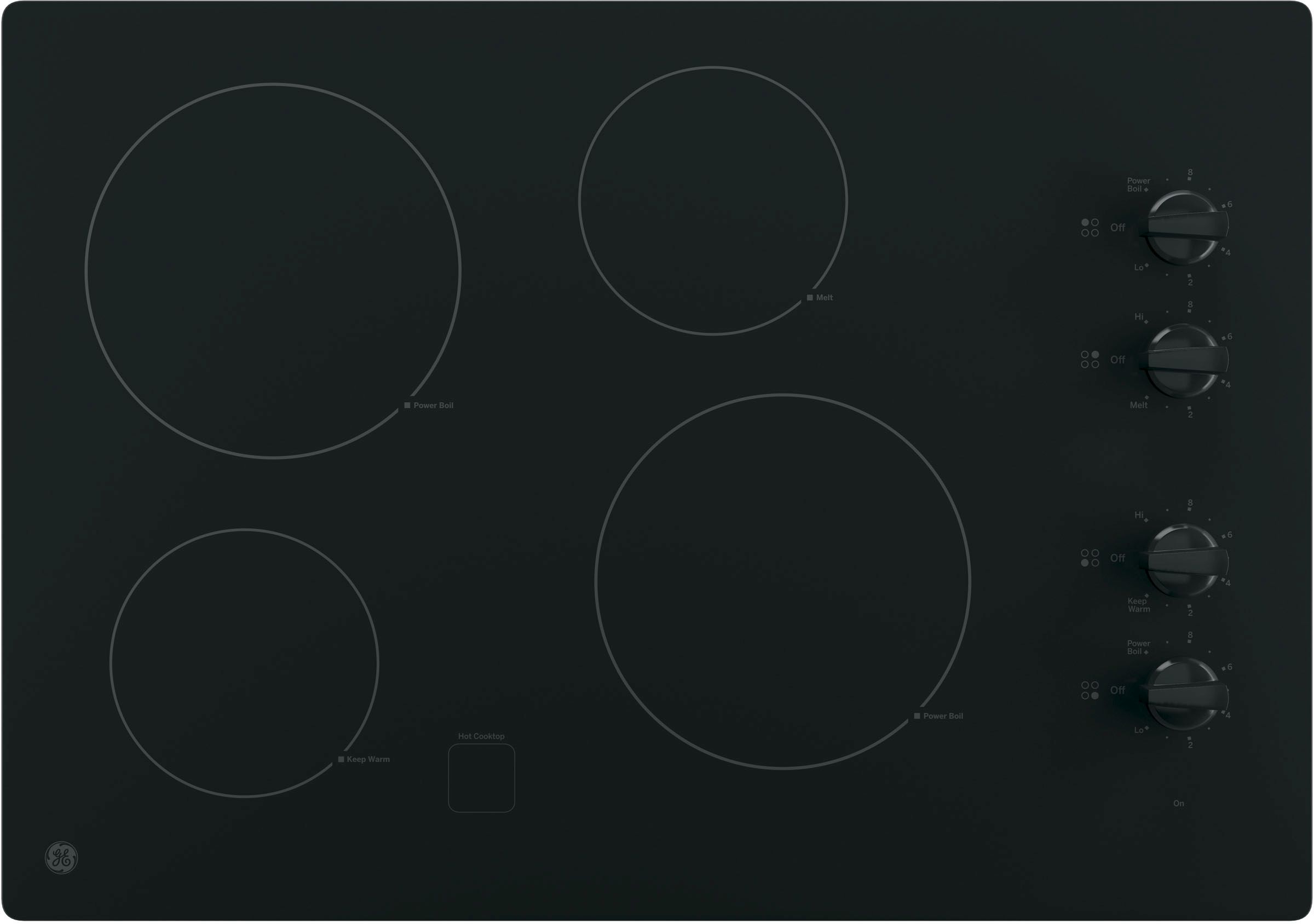 GE® 30" Built In Electric Cooktop-Black with 4 burners, hot surface indicator lights and keep warm settingRead More