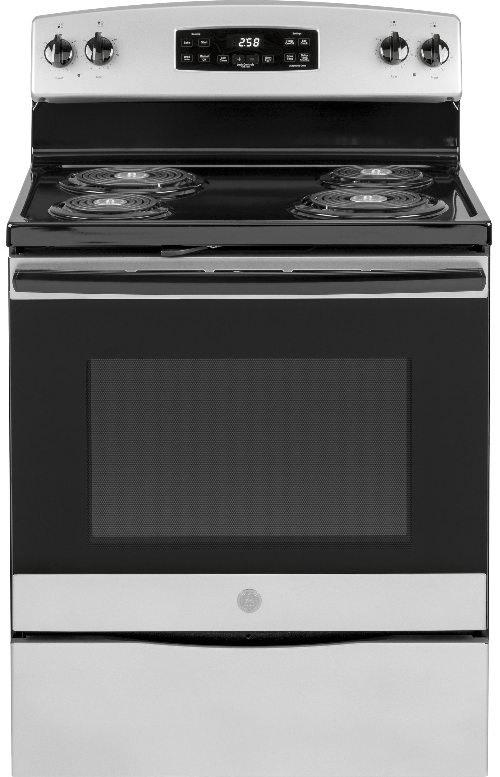 GE® 30" Free Standing Electric Range-Silver with 5.3 Cu. Ft. total capacity, storage drawer, and dual element bakeRead More